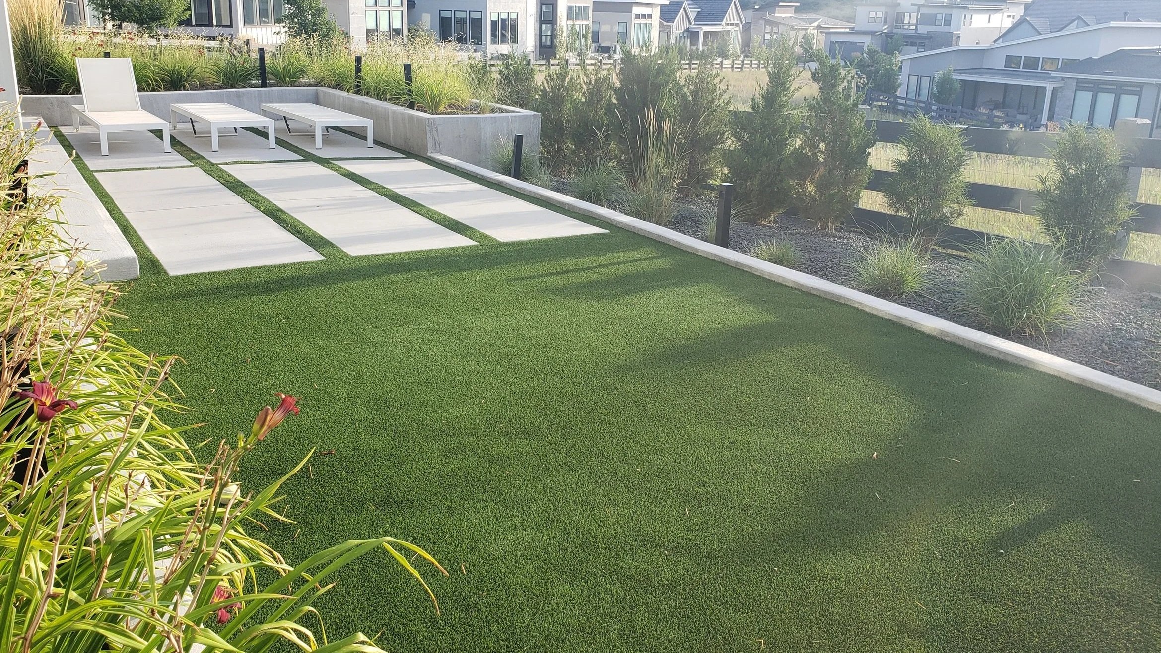 Your artificial turf doesn’t have to be boring. Incorporate a patio, raised beds and fire pits to elevate your outdoor space.